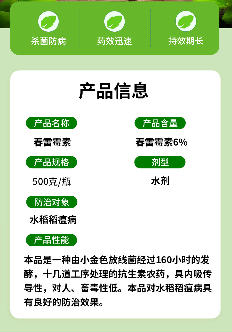 6%春雷霉素叶斑病角斑稻瘟病杀菌剂柑橘蔬菜软腐细菌病害农药