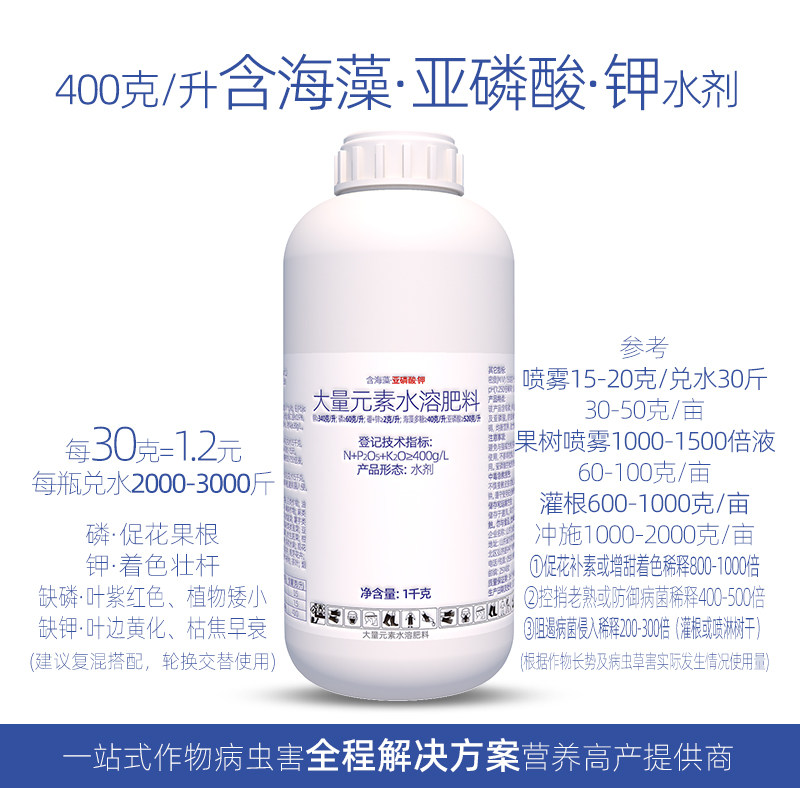 立占400克/升海藻硼锌亚磷酸钾磷钾叶面肥大量元素水溶肥农用肥料