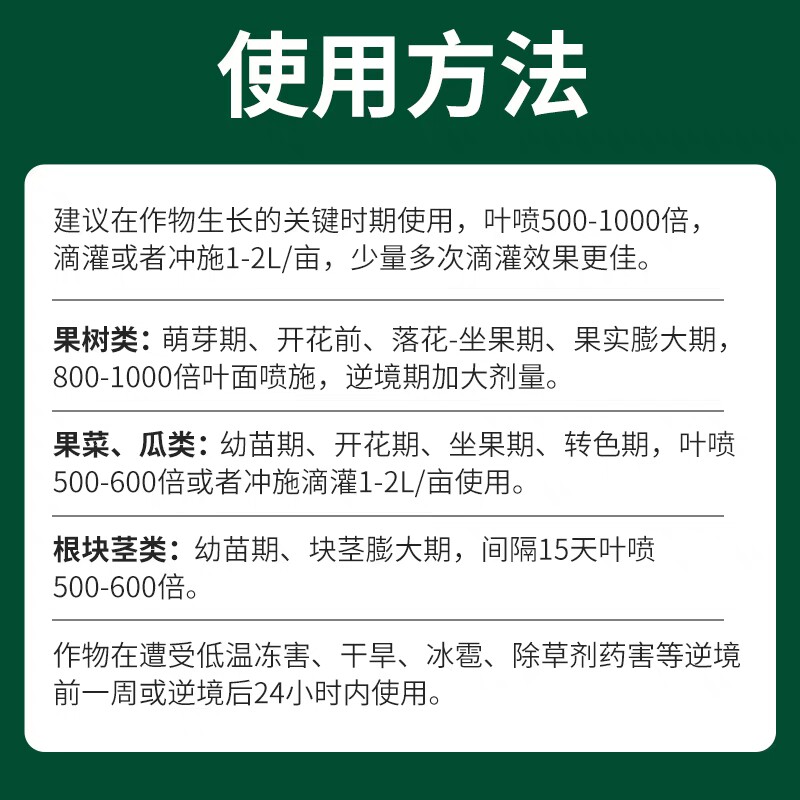 进口氨基酸叶面肥钙镁硼铁锌微量元素肥果树蔬菜通用一喷绿叶面肥