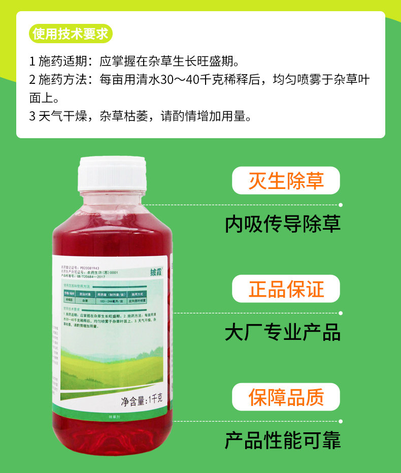 首页> 除草农药> 滨农科技41%草甘膦异丙胺盐烂根剂荒地非耕地杂草除草剂农药正品