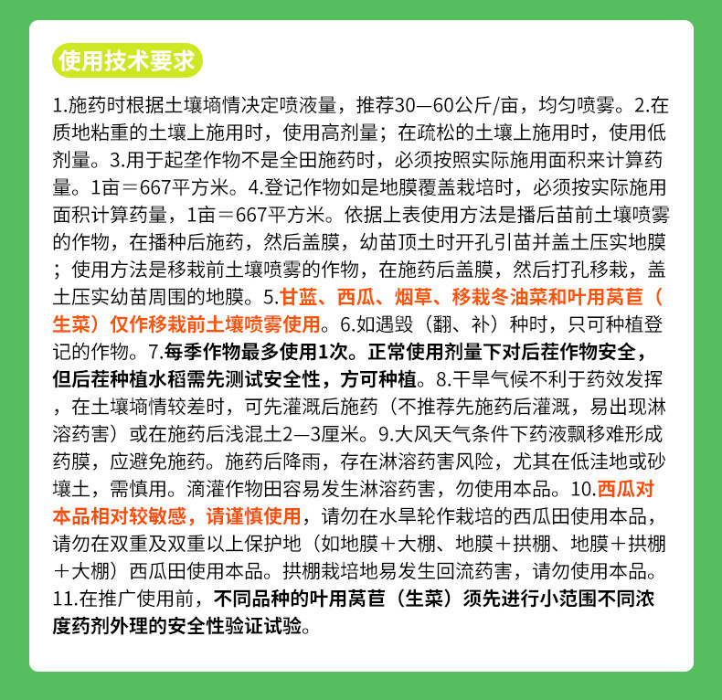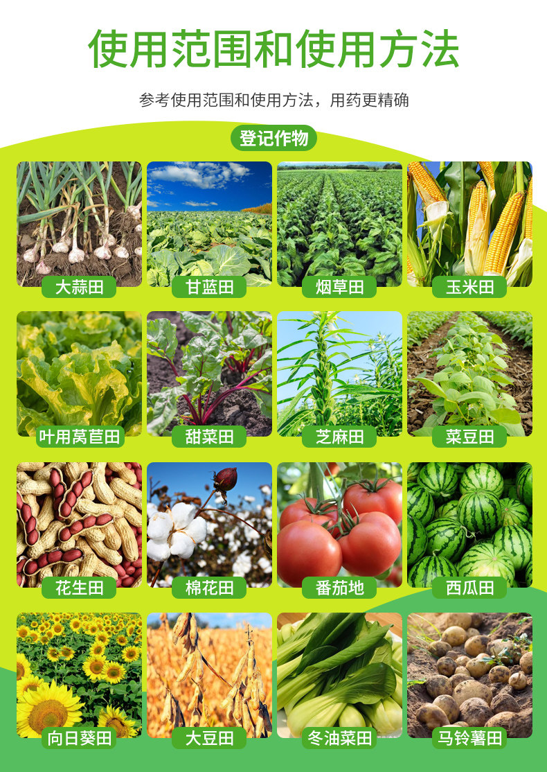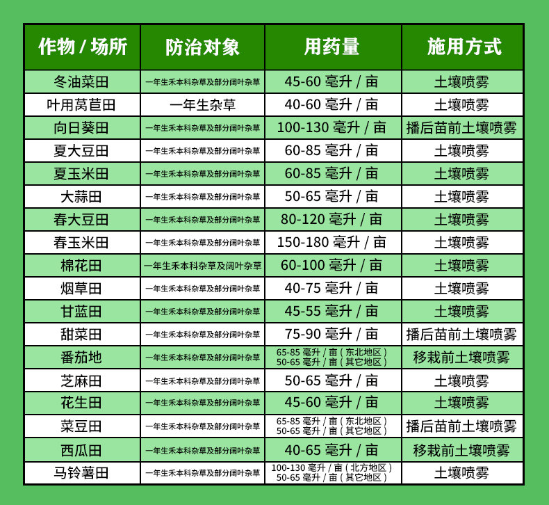 防治对象:一年生禾本科杂草及部分阔叶杂草