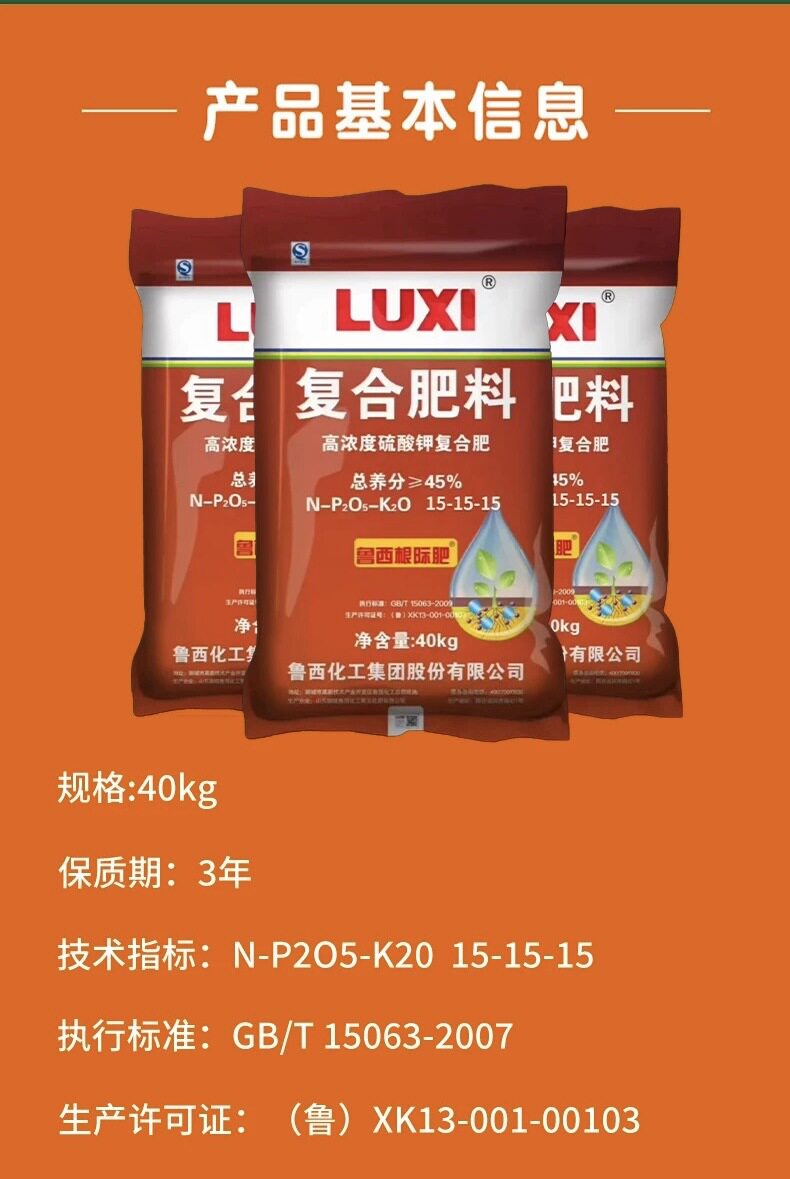 鲁西牌平衡三元复合肥高塔硝硫基15-15-15果树蔬菜花卉通用肥速效